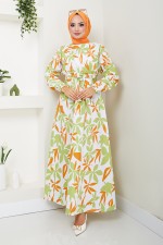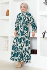 Desenli Tesettür Elbise ETT10068-M Yeşil