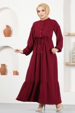 Düğmeli Elbise ASN1033 Bordo