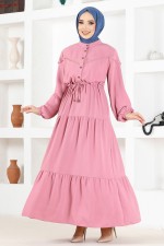 Düğmeli Elbise ASN1033 Gül Kurusu