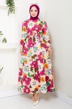 Çiçek Desenli Elbise ETT10067-M Pembe