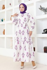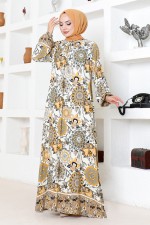 Desenli Tesettür Elbise ETT10068-M Yeşil