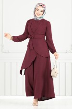 Asimetrik Kesim Tesettür Takım 4743ZNK903-M Bordo