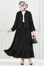 Önden Düğmeli Etekli Takım 3094HBS932-M Siyah