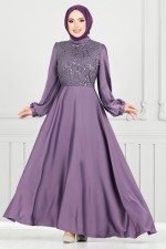 Pul Detay Saten Abiye 5691END900-M Lila