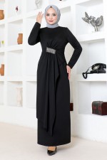 Drapeli Taş İşlemeli Abiye 5020SL890 Siyah