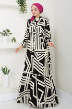 Etnik Desenli Viskon Elbise 4088ZNN894-M Siyah