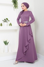 Taş Detaylı Tesettür Elbise 5022SL890 Lila