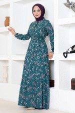 Çiçek Desenli Elbise ZNN4069 Yeşil