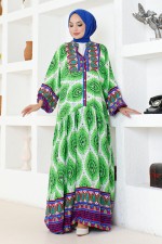 Etnik Desenli Elbise ETT20262 Yeşil