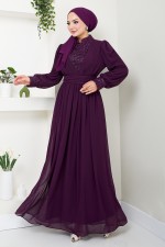 Pullu Şifon Abiye YGS4020 Mürdüm