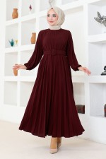 Kemerli Elbise HBS9897 Bordo