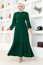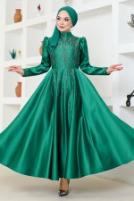 Taşlı Saten Abiye YGS6357 Zümrüt