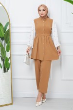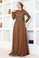 Taşlı Abiye PRC4117 Kahverengi