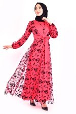 Kolyeli Tül Elbise Mercan ASM2453