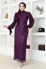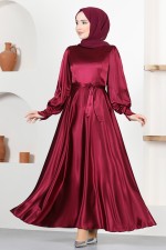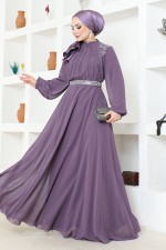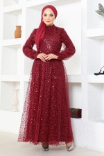 Boncuk İşlemeli Tül Abiye LPN5014 Bordo