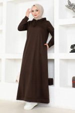 Kapüşonlu Elbise MSL0045 Kahverengi