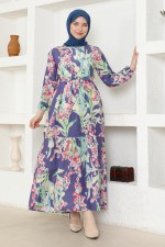Çiçekli Elbise ZNK4663 İndigo
