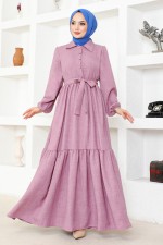 Kuşaklı Elbise HBS3025 Lila