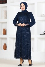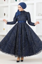 Pulpayetli Şifon Abiye İndigo MİH19107
