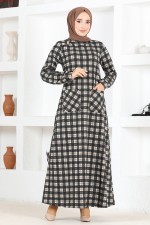Düğme Detay Elbise MSL1170 Kahverengi