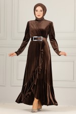 Kadife Abiye ASM2634 Kahverengi