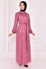 Kuşaklı Tül Elbise Gül Kurusu ASM2444