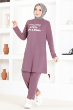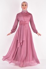 Çiçekli Şifon Elbise Gül Kurusu NEV14650