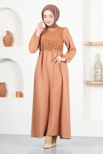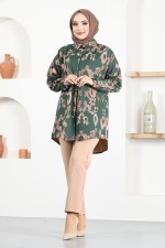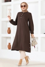 Düğme Detay Tunik MSL1432 Kahverengi