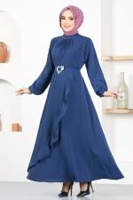 Kemerli Elbise ASN128 İndigo