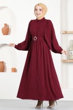 Kemerli Elbise ASN140 Bordo
