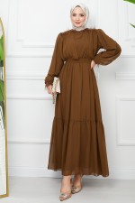 Şifon Elbise EFS523 Kahverengi