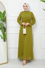 model gerçekten çok güzel rengini çok beğendim şık bir elbise kemerindeki ufak zincir detayına da bayıldım gerçekten kendi bedeninizi alın