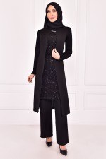Elbiseli Triko Takım MSL21424 Siyah