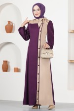 Düğme Detay Elbise Mürdüm ASM2460