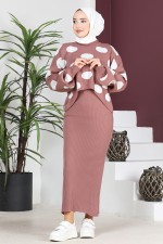 Elbiseli İkili Triko Takım MSL5813 Gül Kurusu
