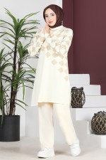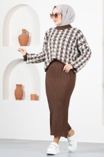 Elbiseli İkili Triko Takım MSL5812 Kahverengi