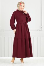 Broşlu Tesettür Elbise 4518NFC915-M Bordo