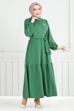 Broşlu Tesettür Elbise 4518NFC915-M Zümrüt