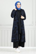 Desenli Üçlü Tesettür Kombin 4012BGS895-M İndigo&Siyah