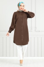 Önden Düğmeli Tunik 4447KTR927-M Kahve