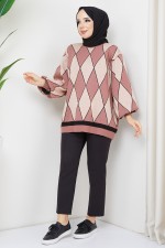 Baklava Desenli Triko Tunik MSV21205 Gül Kurusu