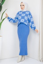 Elbiseli İkili Triko Takım MSV21211 Mavi