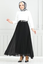 Piliseli Şifon Etek 16202BSK984-M Siyah
