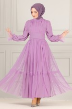 Kemerli Şifon Abiye END5521 Lila