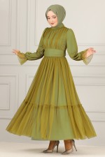Kemerli Şifon Abiye END5521 Nefti Yeşili