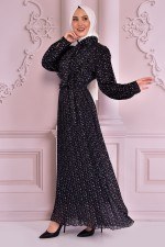 Kuşaklı Şifon Abiye Siyah NEV14692