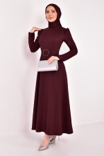 İnci Detay Elbise Bordo ASM2614