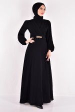 Kemerli Elbise Siyah ASM2534