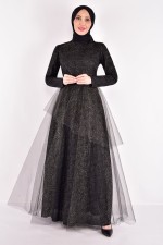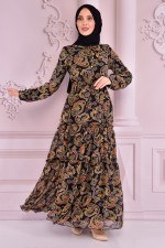 Etnik Desenli Şifon Elbise Siyah NEV14622