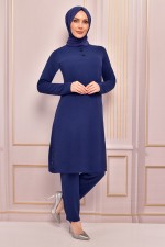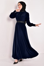 Kuşaklı Elbise Lacivert ASM2596